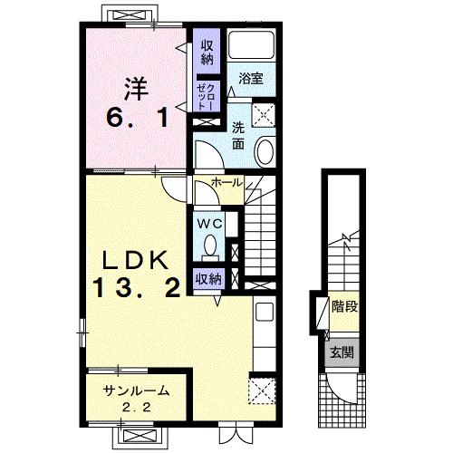 | 間取り | 1LDK | 間取り詳細 | 洋6.1 LDK13.2 |