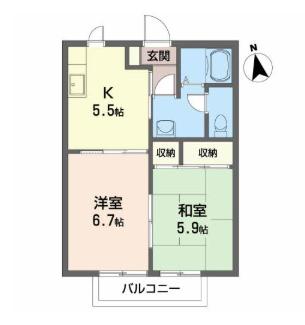 間取り 2K 間取り詳細 K5.5 洋6.7 和5.9