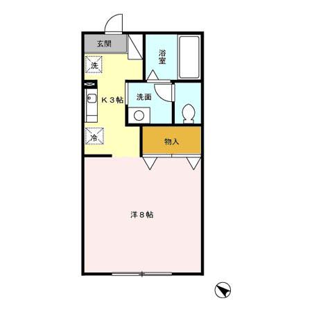 | 間取り | 1K | 間取り詳細 | 洋8 K3 |
