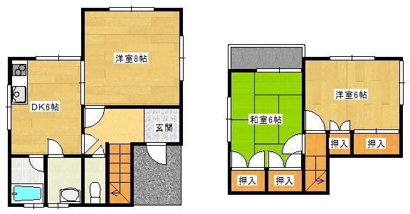 | 間取り | 3DK | 間取り詳細 | DK6 洋8 洋6 和6 |