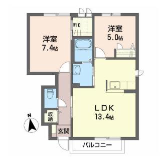 | 間取り | 2LDK | 間取り詳細 | LDK13.4 洋7.4 洋5 |