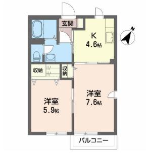 | 間取り | 2K | 間取り詳細 | K4.6 洋7.6 洋5.9 |
