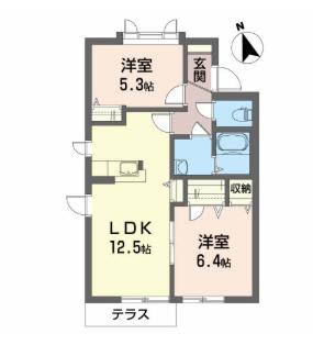 | 間取り | 2LDK | 間取り詳細 | LDK12.5 洋6.4 洋5.3 |
