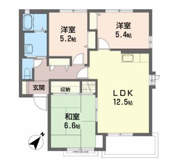 | 間取り | 3LDK | 間取り詳細 | LDK12.5 洋5.2 洋5.4 和6.6 |
