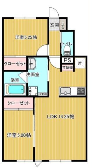 | 間取り | 2LDK | 間取り詳細 | LDK14.2 洋5.2 洋5 |