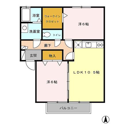 | 間取り | 2LDK | 間取り詳細 | LDK10.5 洋6 洋6 |