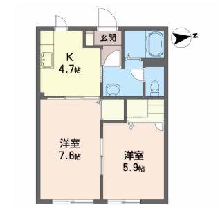 | 間取り | 2K | 間取り詳細 | K4.7 洋5.9 洋7.6 |