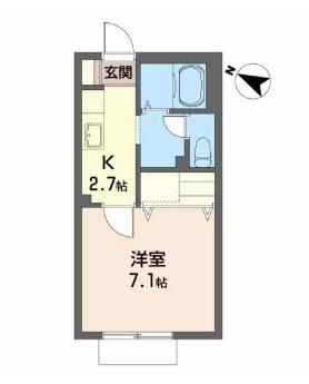 間取り 1K 間取り詳細 K2.7 洋7.1