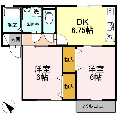 | 間取り | 2DK | 間取り詳細 | DK6.75 洋6 洋6 |