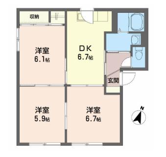 | 間取り | 3DK | 間取り詳細 | DK6.7 洋6.7 洋6.1 洋5.9 |