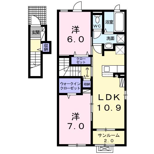| 間取り | 2LDK | 間取り詳細 | 洋7 洋6 LDK10.9 |