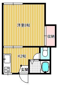 | 間取り | 1K | 間取り詳細 | 洋8 K2 |