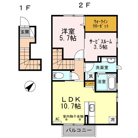 | 間取り | 1LDK | 間取り詳細 | LDK10.7 洋5.7 |