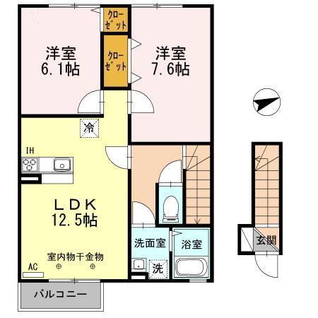 | 間取り | 2LDK | 間取り詳細 | LDK12.5 洋6.1 洋7.6 |