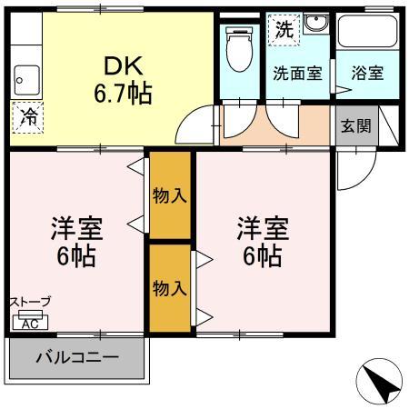 | 間取り | 2DK | 間取り詳細 | DK6.7 洋6 洋6 |